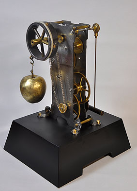 知恵の実(リンゴ)が、知恵の象徴である時計を動かす仕組みになっている。リンゴはニュートンが万有引力の発見した時の話にも出てくる。